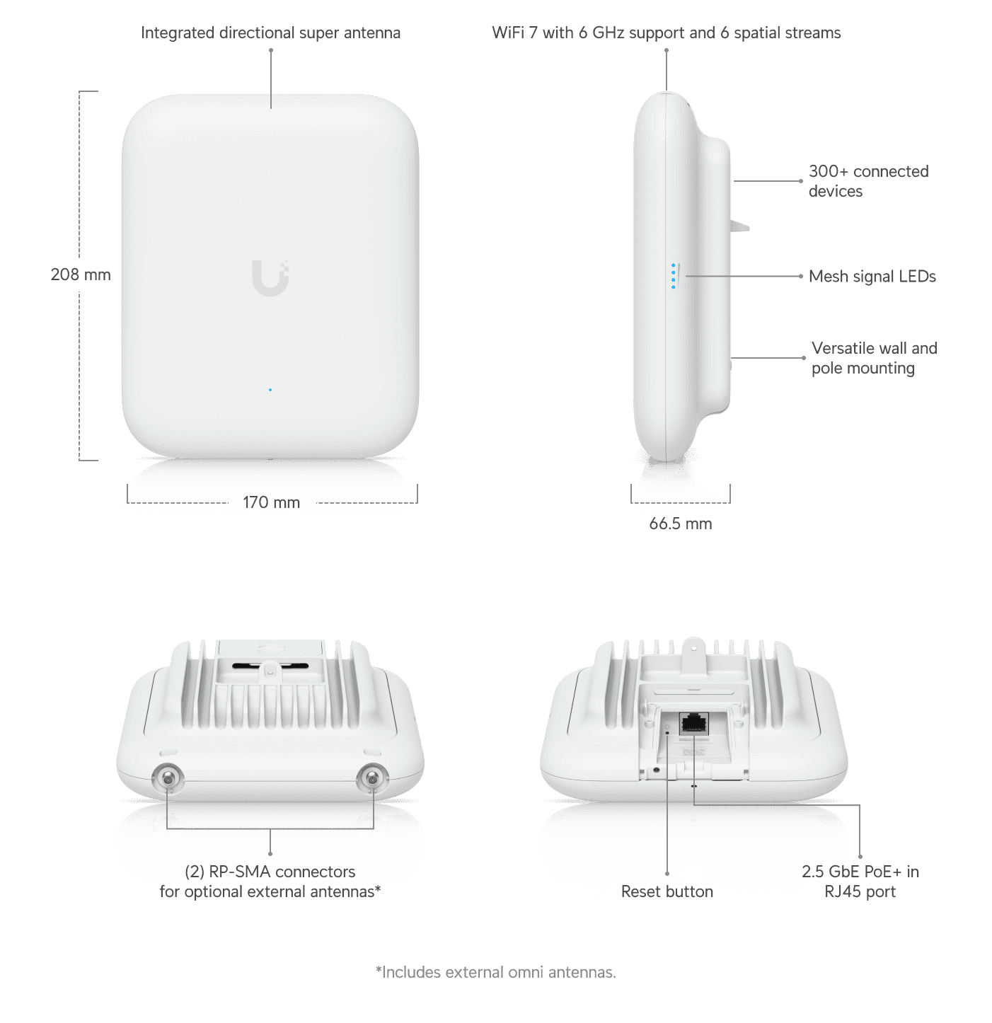 Ubiquiti (U7-Pro-Outdoor) Ubiquiti U7 Pro Outdoor, IP67 WiFi 7 AP,6 Spatial Streams,Extended-range AFC 6 GHz, Integrated Directional Super Antenna,Articulation Mounting Bracket