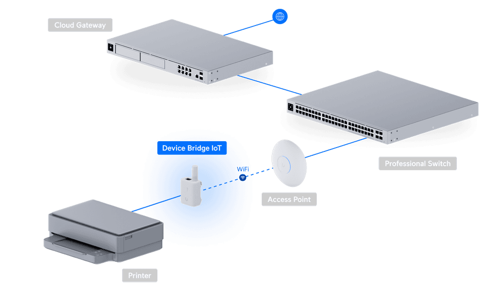 Compact, rugged, and versatile, the new Device Bridge IoT is designed specifically for industrial and IoT environments. It bridges any Ethernet device into a 2.4 GHz UniFi Wi-Fi network using Auto-Link, offering multiple power options and DIN-rail mounting for flexible installation. External antenna support ensures strong connectivity even in challenging signal conditions, or when a specialised antenna is required.